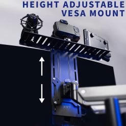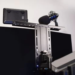 This modern shelving unit is a sturdy, helpful addition to your computer monitor setup, creating convenient storage space for your livestreaming accessories above or behind your screen. The shelf can hold cameras, webcams, microphones, lighting, and more. The solid steel mounting bracket supports VESA patterns 100mm in width and gives your monitor setup the extra storage space it needs to display all your livestreaming equipment in one place!