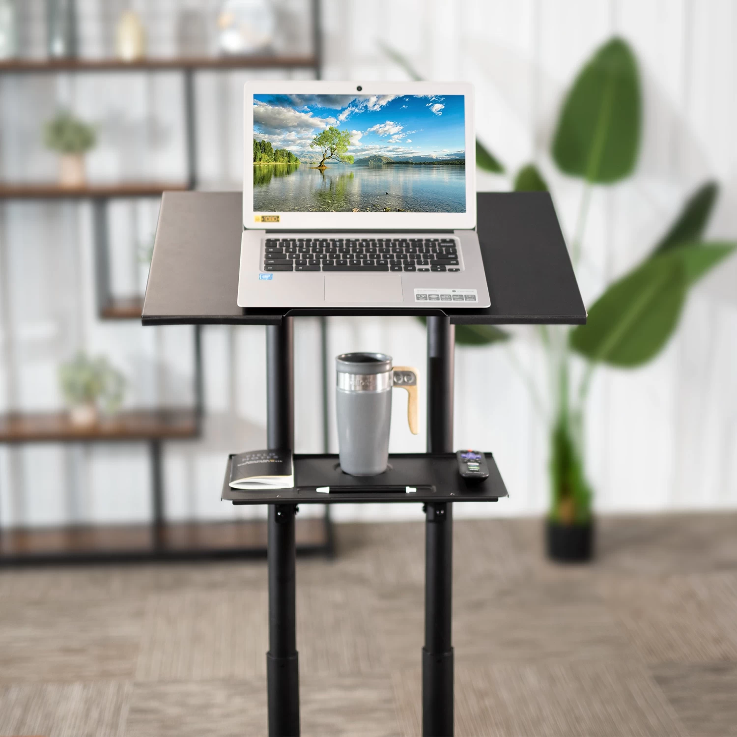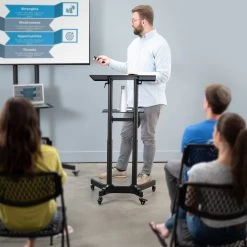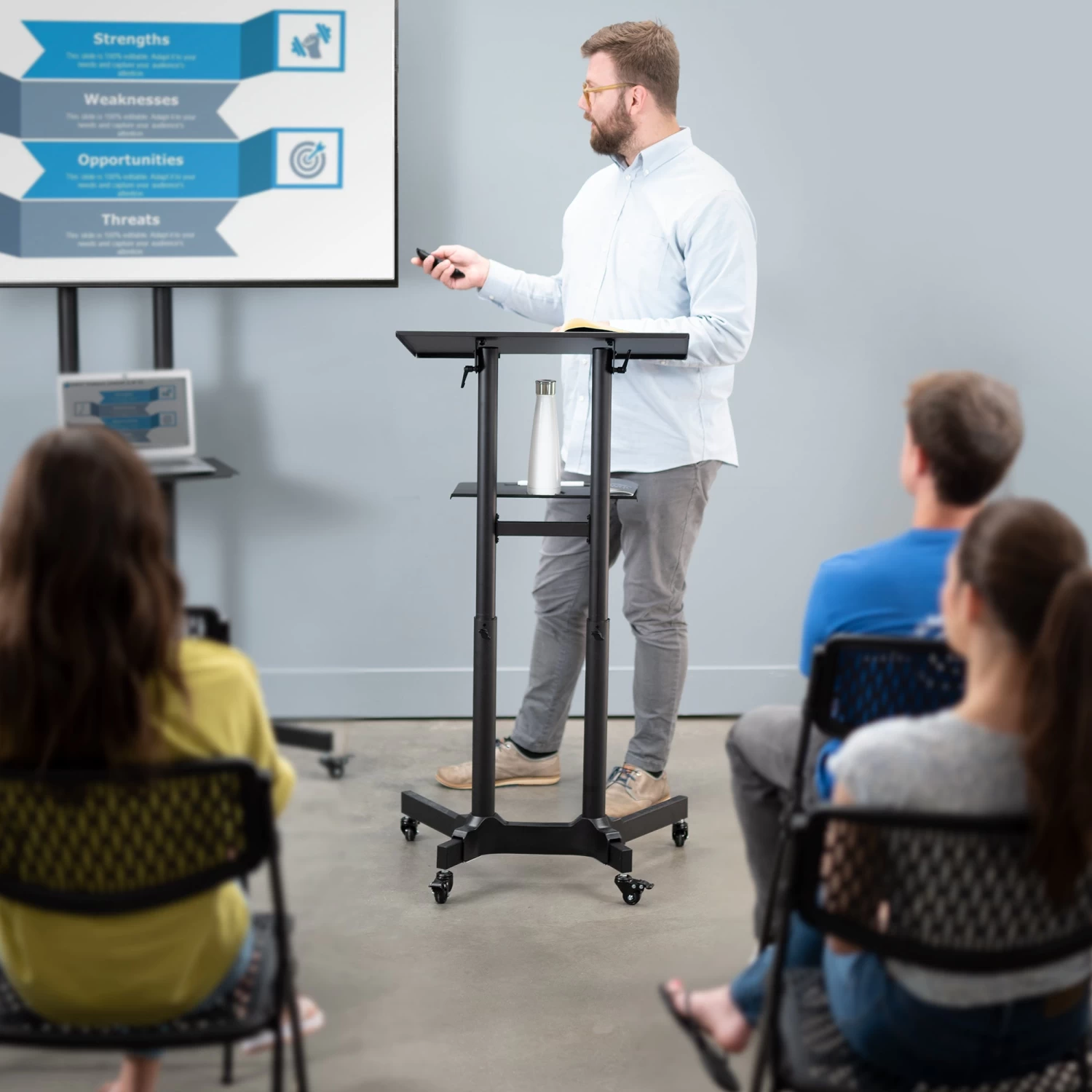 Take your adjustable podium or mobile laptop cart wherever you want to go! Four durable 3” casters provide quick and smooth mobility, and all are lockable for excellent stability when you want the cart to be stationary.