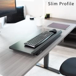 If you’ve been searching for a way to elevate your keyboard and mouse to meet the rest of your workspace, look no further. The solid steel base and impact-resistant desktop are designed for excellent stability, and the trendy black appearance complements nearly any environment. Alleviate wrist pain by using this product’s integrated wrist support that reduces fatigue during prolonged work sessions.