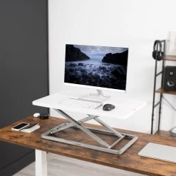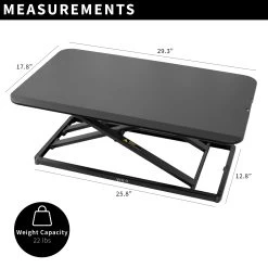 This adjustable workstation allows you to find that needed healthy balance between sitting and standing throughout the long work day for increased alertness and productivity. –Patented–