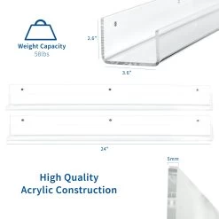 Acrylic 24” X 4″ Floating Bookshelves (2 Pack)