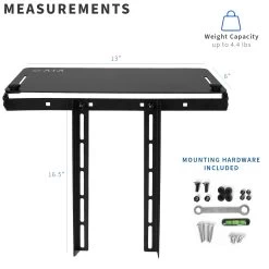 This modern shelving unit is a sturdy, helpful addition to your computer monitor setup, creating convenient storage space over or under your screen. The shelf is capable of holding media devices, controllers, routers, speakers, and more. Solid steel mounting brackets support VESA patterns 75mm, 100mm, and 200mm in width, giving your monitor setup the extra storage space it needs to minimize clutter and promote a clean display. –Patent Pending–