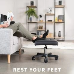 Featuring thick padding and 360-degree swiveling casters, this versatile leg rest can be used anywhere it’s needed. Whether you want to elevate your feet at your desk, on the sofa, or in a study area, our ergonomic footstool has you covered! Pneumatic spring height adjustment makes it fast and easy to change the height to the most comfortable position, and all the wheels are lockable to make the footrest stationary when desired. This product can also double as a temporary seat for ultimate convenience.