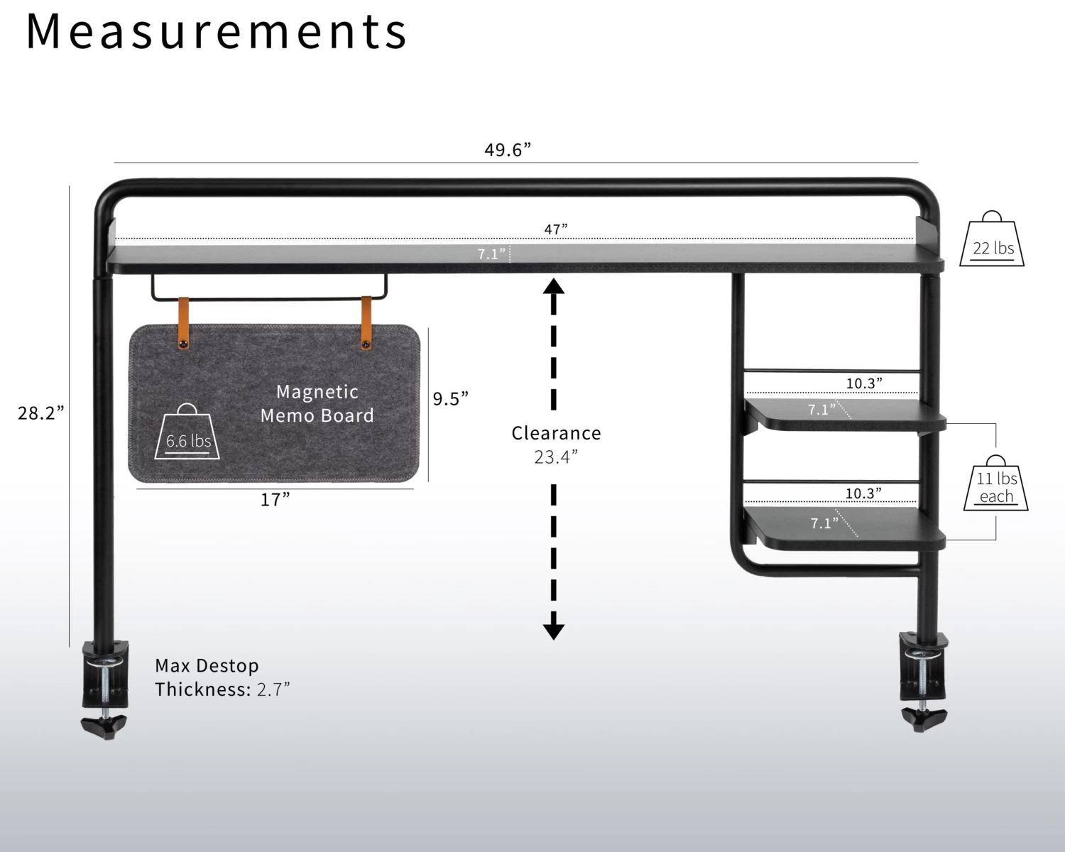SKU: DML2B 8483927359764 Categories: Shelving, Workspace, Workspace Tags: _tab_warranty, Color_Black, Number of Shelves_3, Type_Clamp On
