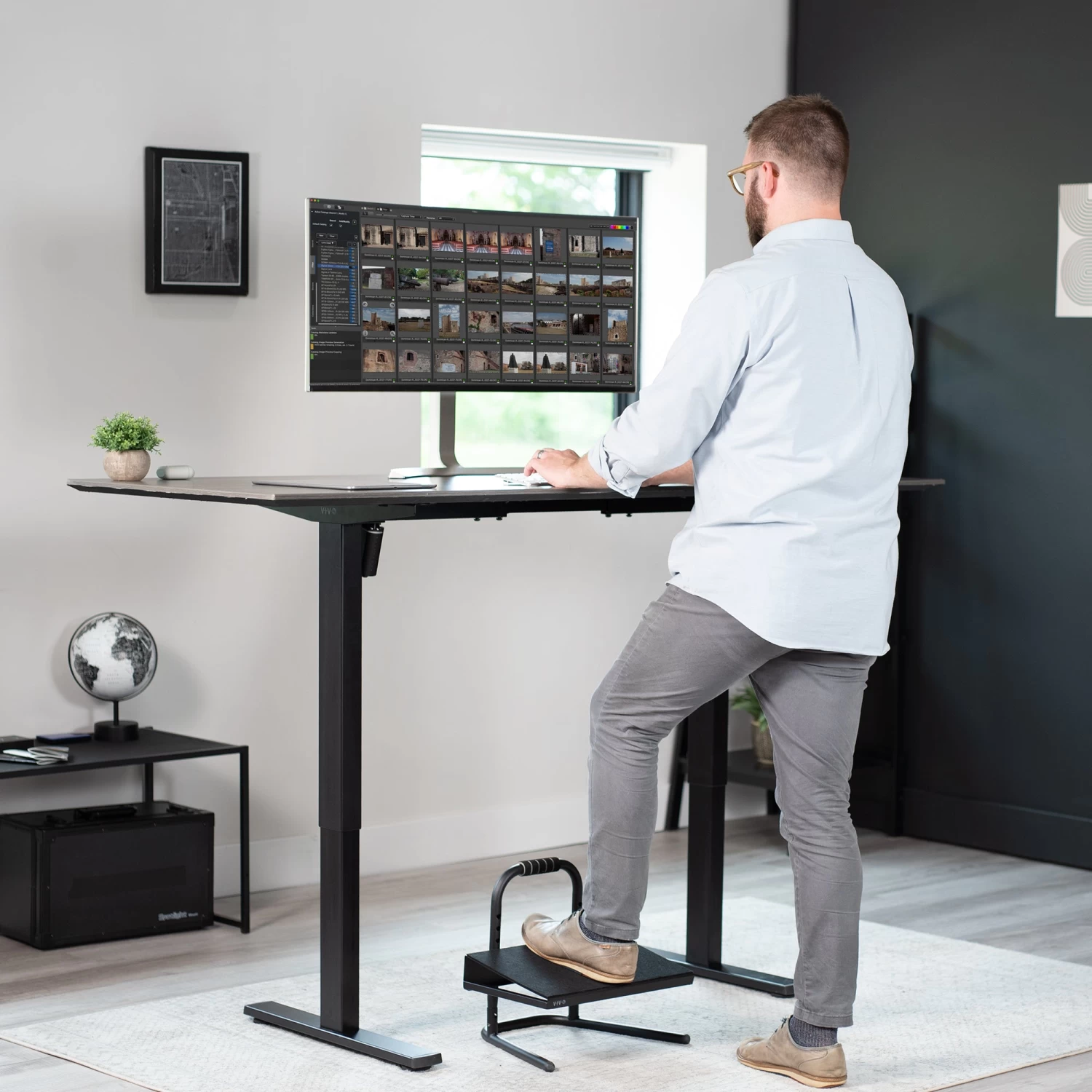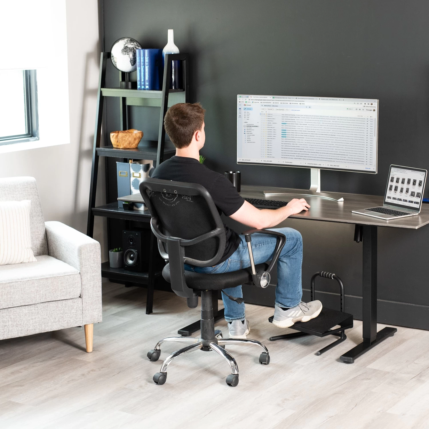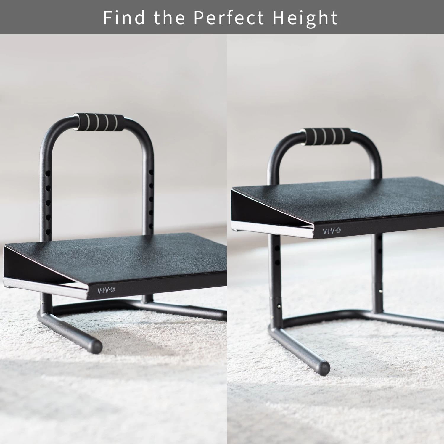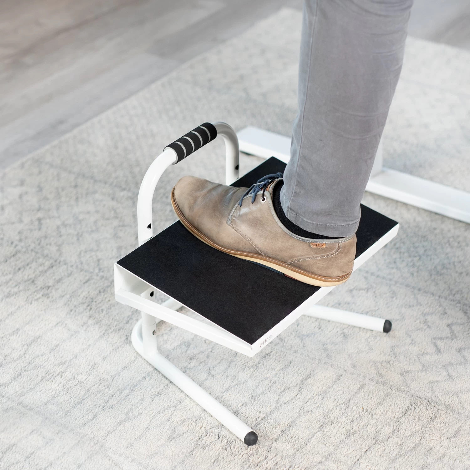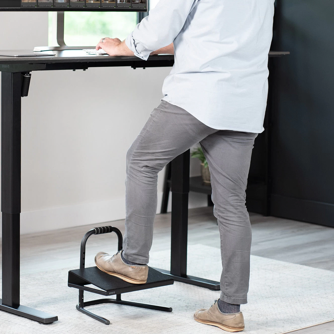 Create a comfortable and more ergonomic workspace with the Adjustable Heavy Duty Footrest designed for workers who sit or stand all day with little ergonomic support. Elevating feet and legs while sitting reduces physical stress and can support better posture. If you start to feel exhaustion in your legs and feet after standing or sitting for a long time, simply prop a foot upon the stand to alleviate some of that tension.