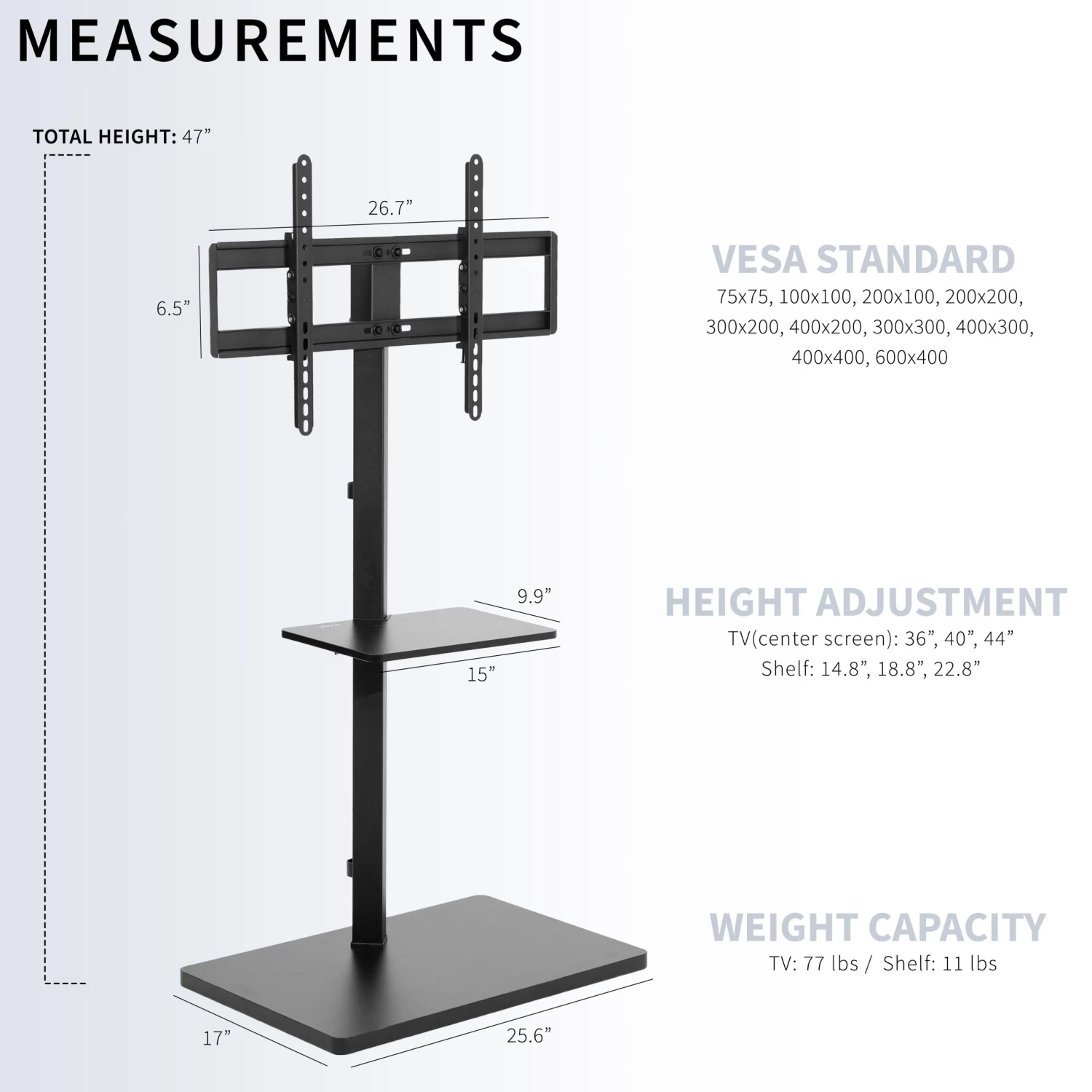 SKU: DML2B 8959137186068 Categories: Mounting, Stands, TV Mounts Tags: _tab_warranty, Color_Black, Max Screen Size_75", Type_Freestanding