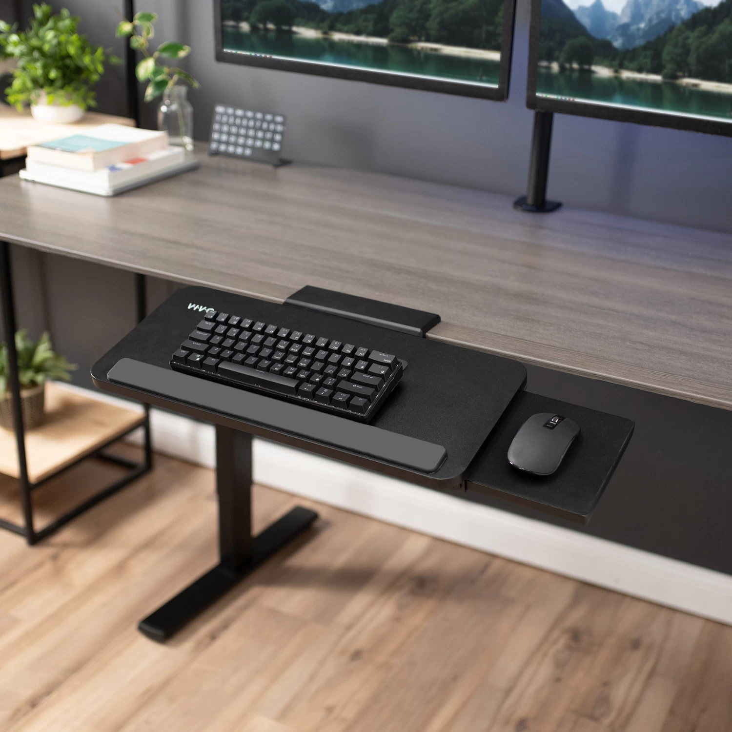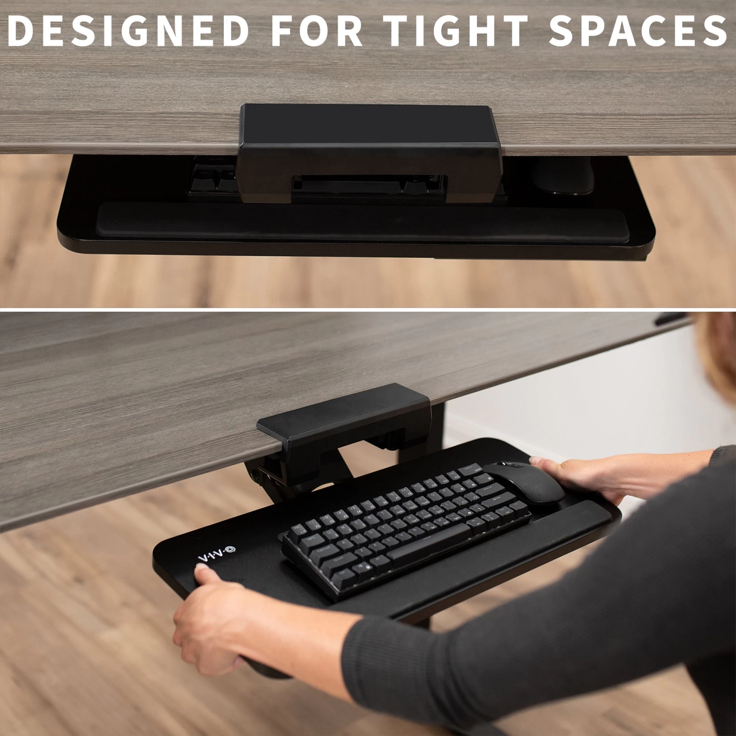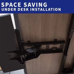 Save desk space and enjoy comfortable typing angles with this innovative keyboard tray and mousepad! Enhance your typing posture by placing your keyboard tray below the desk surface, and click away in comfort with a mousepad extension just for your mouse! An adjustable and convenient workflow is far more ideal and easy on the body as you type at a more ergonomic position. When not in use, simply slide the tray under the desk and out of the way.