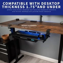 Win back valuable desk space by adding a lower-tier surface for the keyboard, mouse, and other small items. Designed with user-geared features such as smooth gliding motion for easy placement, height adjustable C-clamps for convenient mounting, and anti-skid padding for scratch resistance, this mount was built to perform!