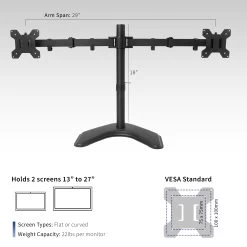 SKU: DML2B 5452717703 Categories: Dual Mounts, Monitor Mounts, Mounting Tags: Amount of Screens_2, Color_Black, Screen Size Compatibility_13" to 27", Type_Freestanding