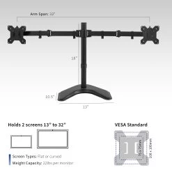 SKU: DML2B 8005461639444 Categories: Dual Mounts, Monitor Mounts, Mounting Tags: Amount of Screens_2, Color_Black, Screen Size Compatibility_13" to 32", Type_Freestanding