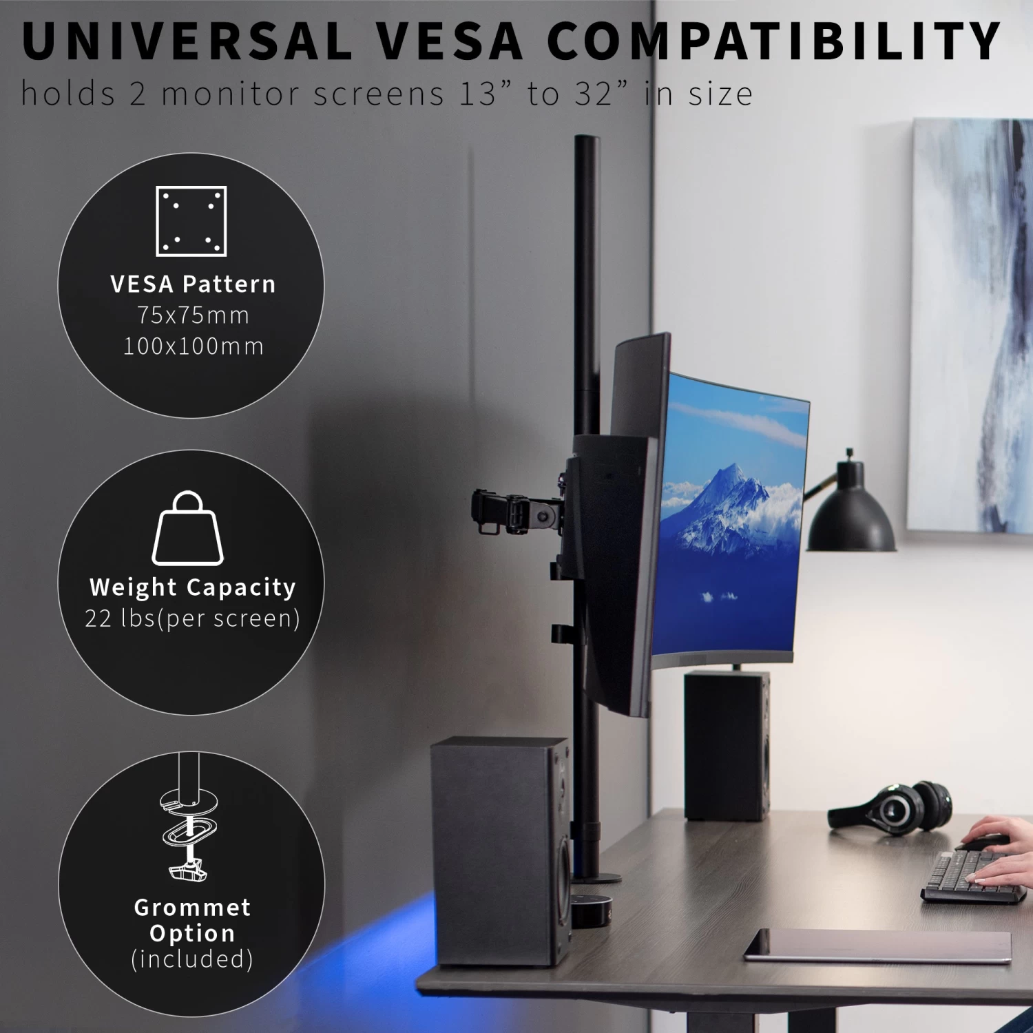 Dual Monitor Extra Tall Desk Mount Up To 32″ Screens