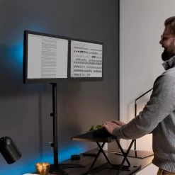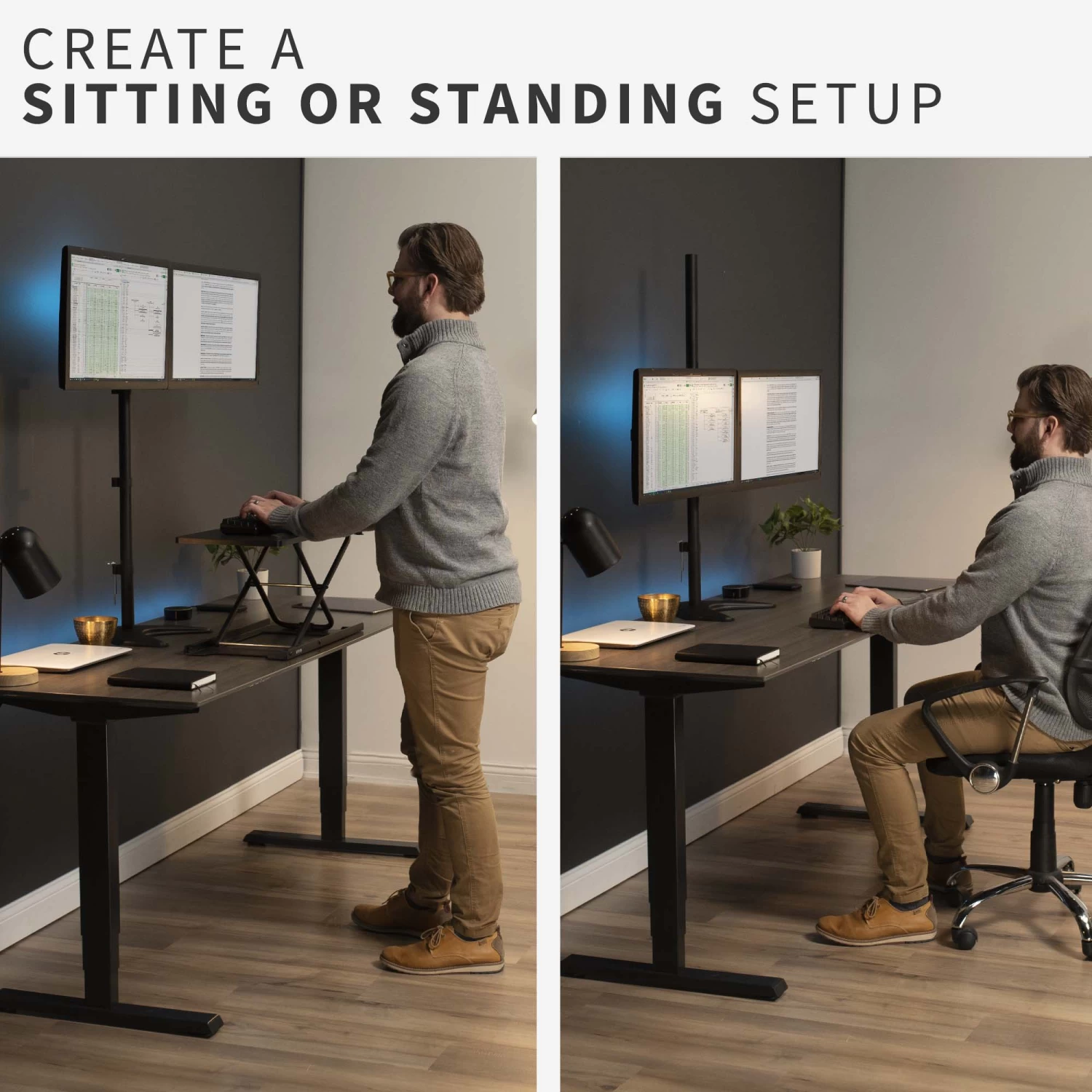 Clear up valuable work space on your desk with our extra tall, freestanding dual monitor mount.