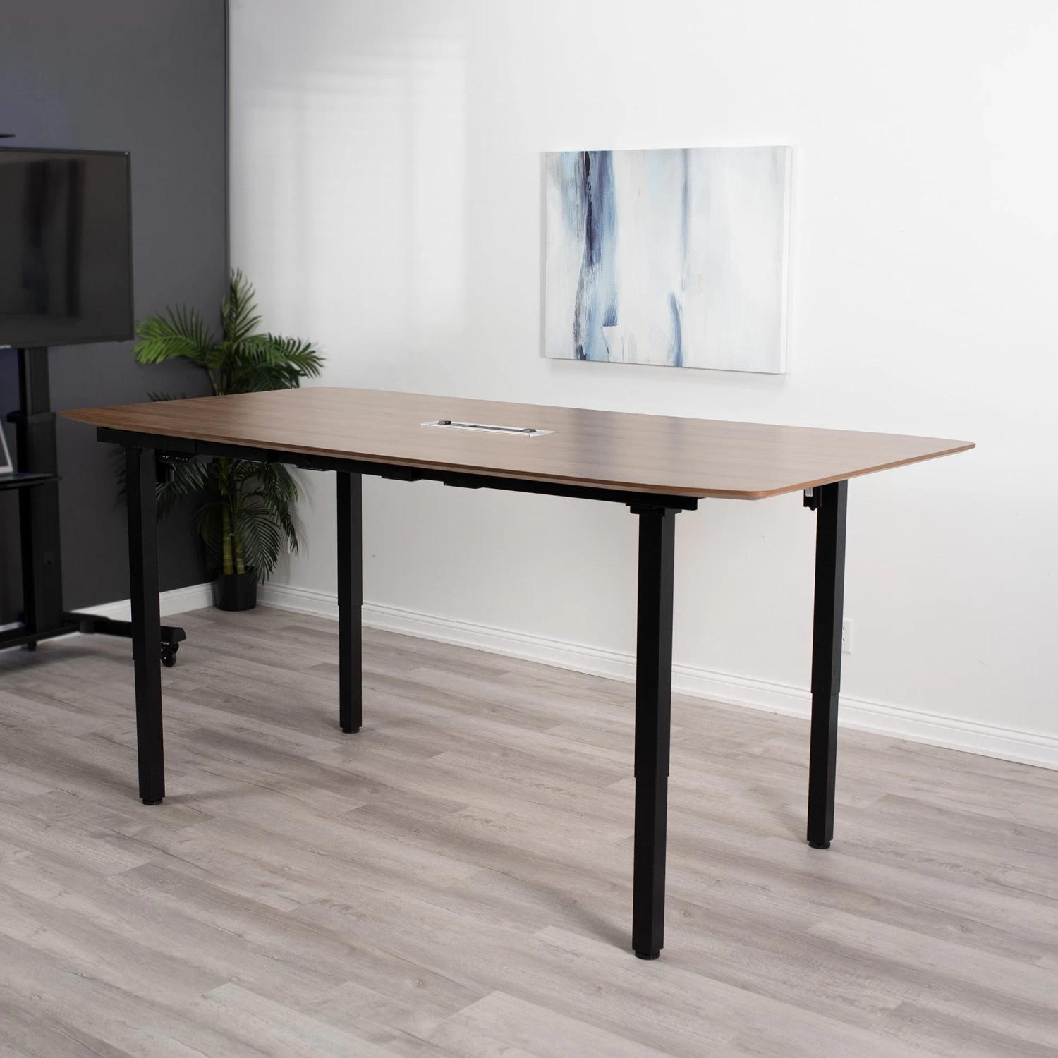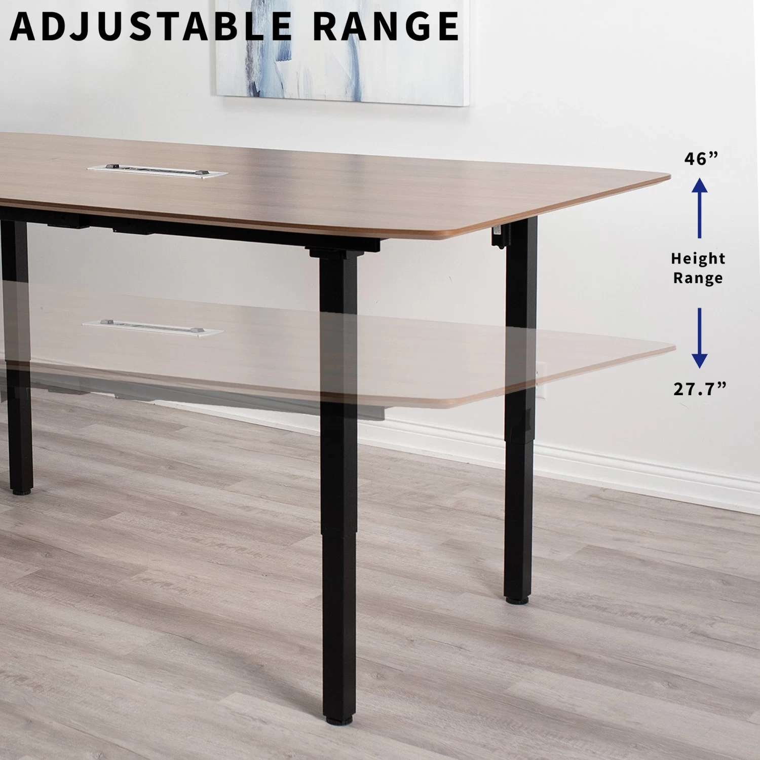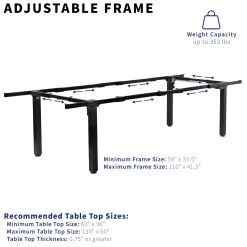 This extra-large, adjustable frame accommodates heavy-duty desktops from 60” x 36” to 130” x 60” in size. Solid steel design provides excellent stability for up to 352 lbs of weight and is built to last. Dual motor electric lift makes height adjustments fast and easy with a memory controller to save your desired heights.