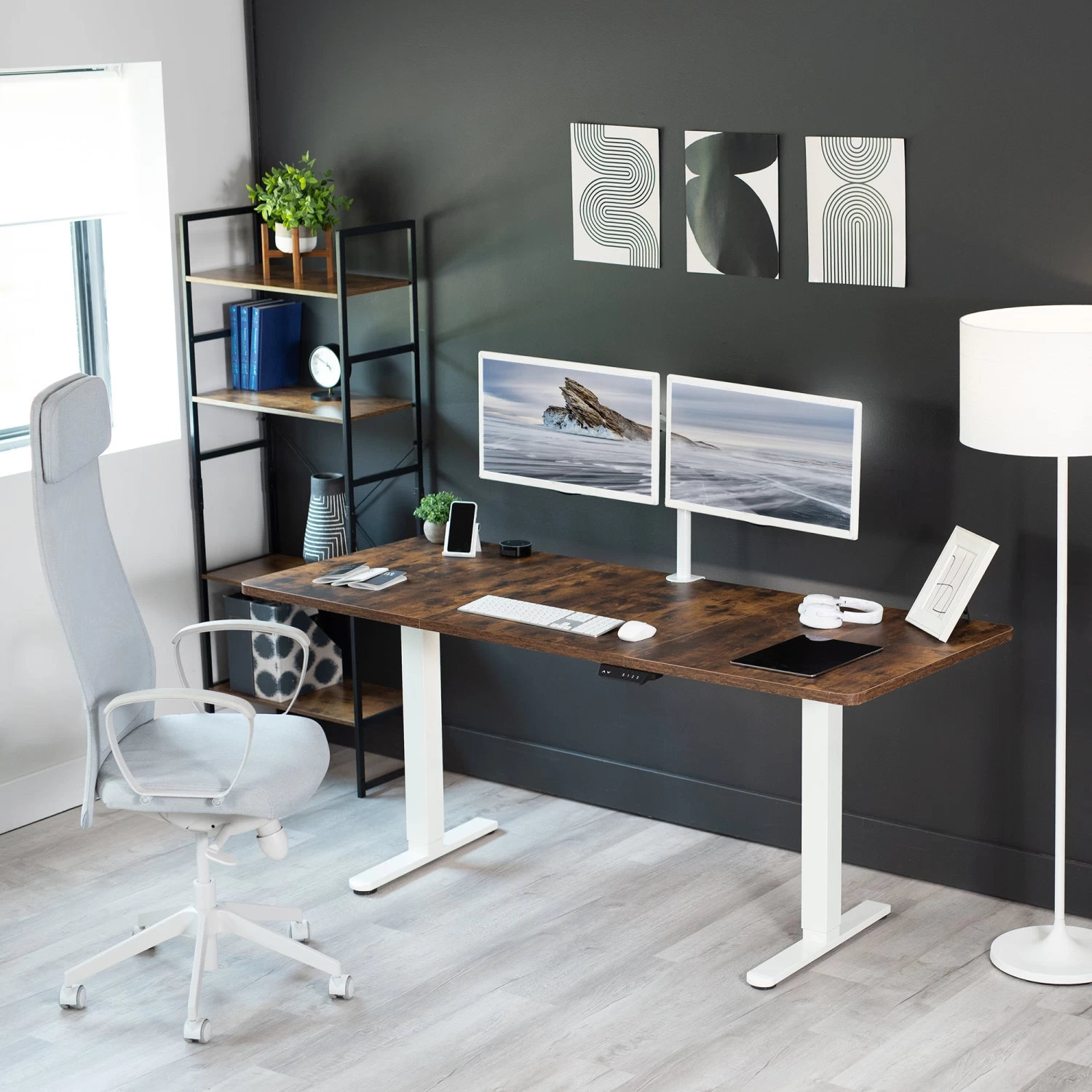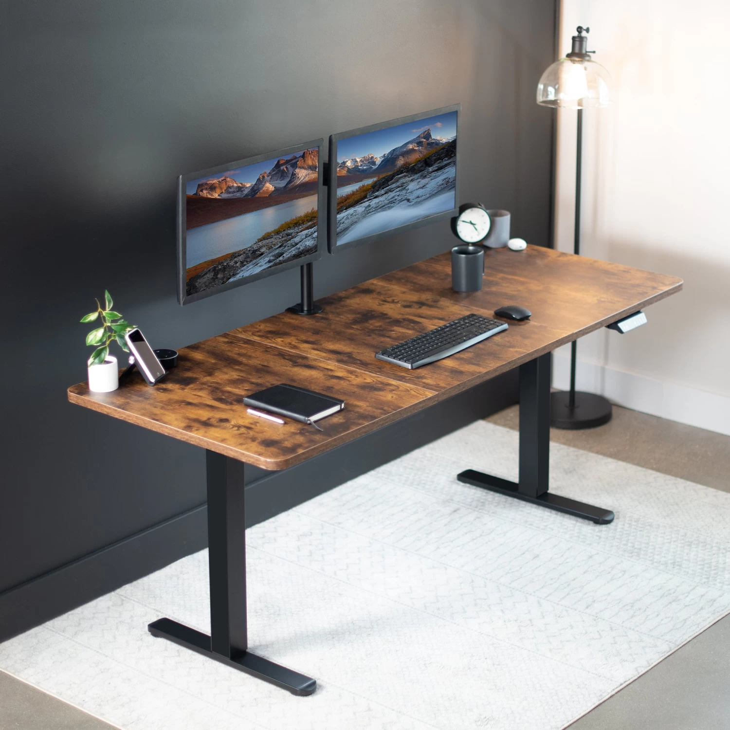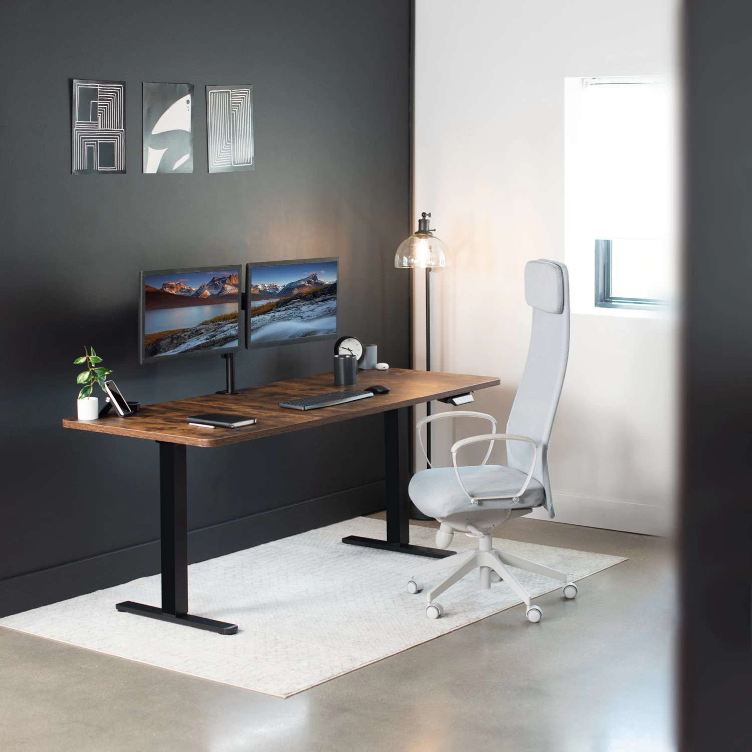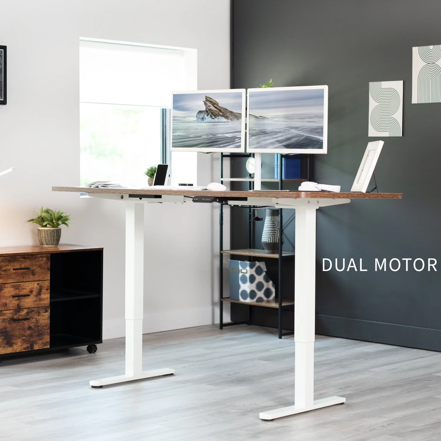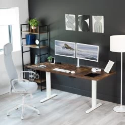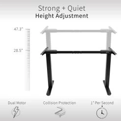Create your own active workstation and find a healthy balance between sitting and standing with our Electric Dual Motor Desk Frame. Stand up in seconds with this solid frame featuring a powerful lift system for smooth transitions, customizable controller settings, adjustable feet, and solid leg support for desk surfaces.
