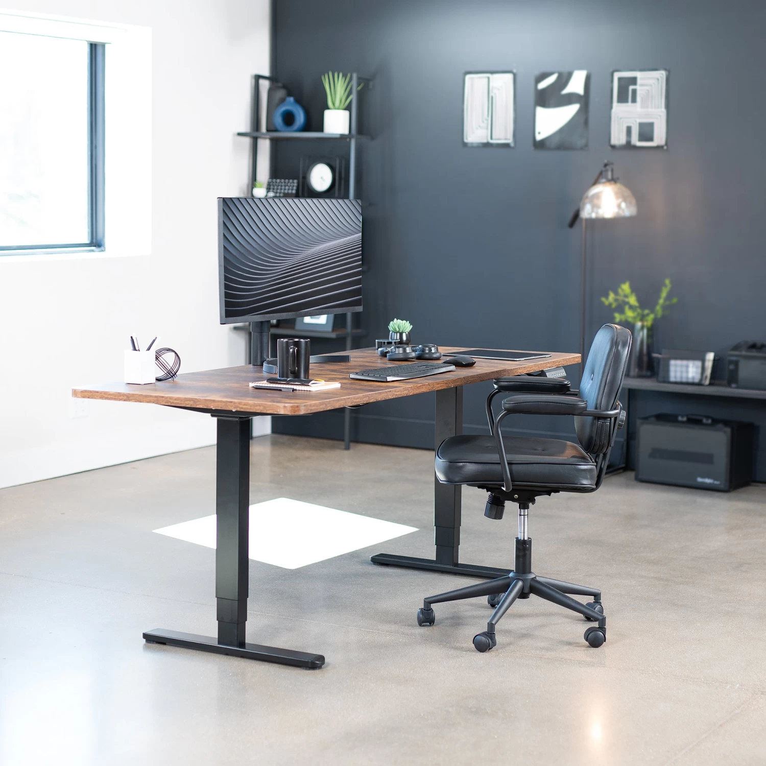 Our height adjustable desk frame is the perfect piece for your standing desk station, allowing you to find that much-needed healthy balance of sitting and standing throughout the long workday.