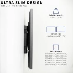 This heavy-duty, yet ultra-slim mount secures your 32” to 75” flat screen to any wood stud or concrete wall surface, making showtime easier than ever. Electric adjustment swivels your TV up to 90 degrees, letting you choose your favorite positions without leaving your seat!