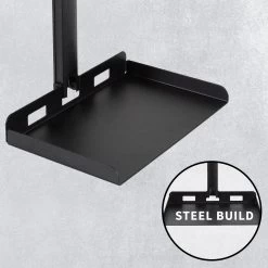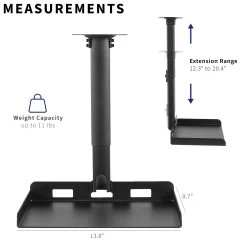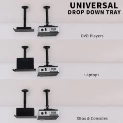 Great for home theaters, business conference rooms, classrooms, and more, this steel mount features an extending arm for optimal viewing angles, a spacious tray for holding a variety of devices, and hidden cable management for a clean display. It can also hold a laptop, video camera, or other electronic device for versatile use.