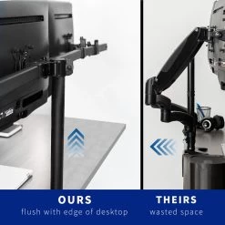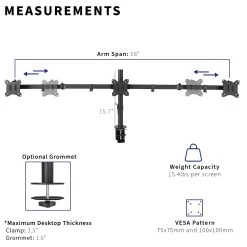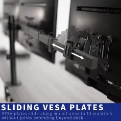 Clear up valuable workspace and view 3 monitors side-by-side with this innovative stand! Sliding VESA brackets create a snug side-by-side monitor positioning without fear of arms extending beyond the bounds of your desk, creating a setup that’s flush with the wall. Featuring arm articulation for comfortable viewing angles, removable VESA plates for easy installation, adjustable monitor height for ideal positioning, and more, this mount is customizable to your particular office needs.
