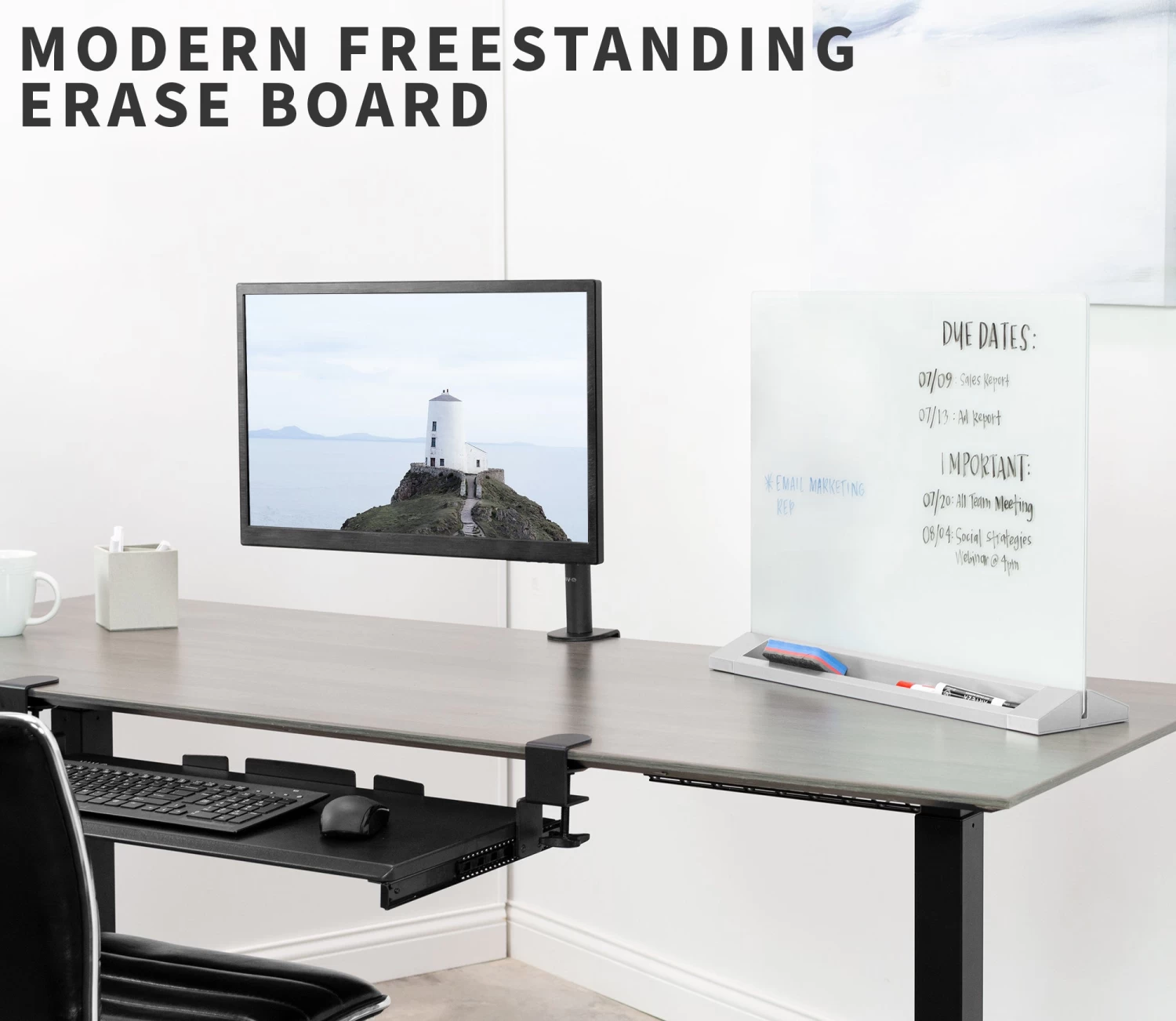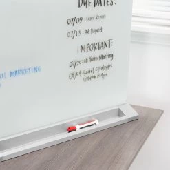 Add an interactive dimension to your workstation with this glass whiteboard! Keep your notes and reminders within reach to better organize your tasks and remember appointments. It’s the perfect accessory for the office or home.