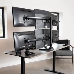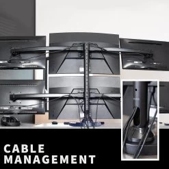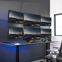 Mount six monitors to our sturdy hex monitor desk stand. This mount is made of high grade steel and aluminum, and every joint is able to be tightened, so you can adjust exactly how fluid or stationary you want.