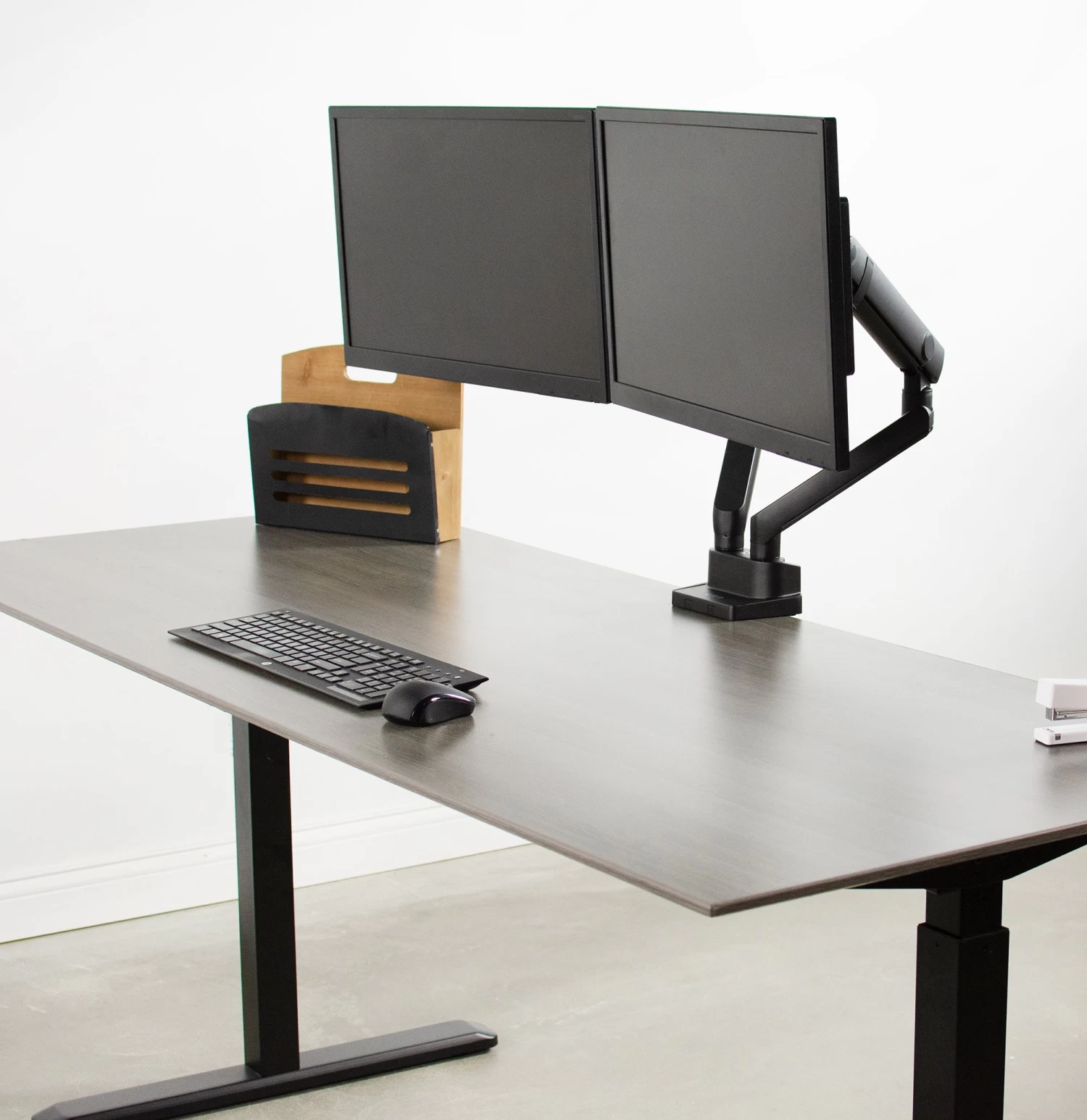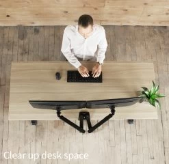 Elevate not just one, but two ultrawide monitors to an ergonomic height and adjust the viewing angle with just the touch of a hand. Featuring high-quality aluminum construction, flexible joints, smooth height adjustment, a sturdy desk clamp/grommet mount, and more, this stand is ready to transform your workspace!