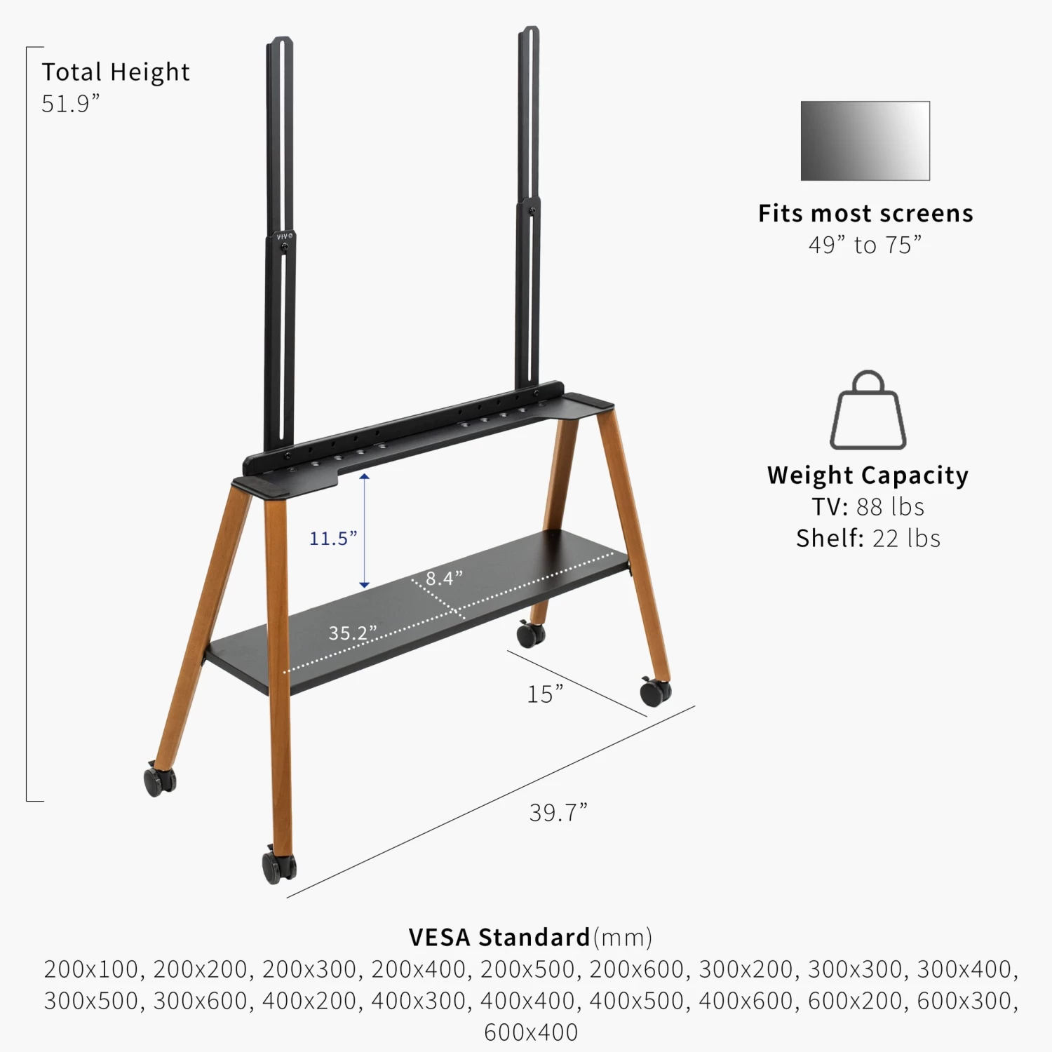 SKU: DML2B 8285554344212 Categories: Mounting, Stands, TV Mounts Tags: _tab_warranty, Color_Dark Walnut, Max Screen Size_75", Type_Freestanding