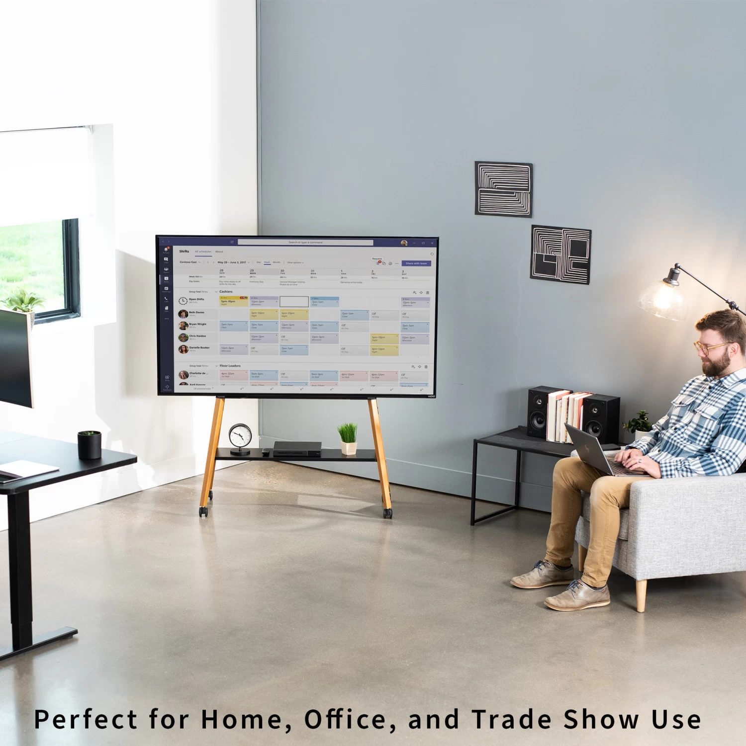 Mobile Easel Stand With Shelf For 49” To 75” TVs