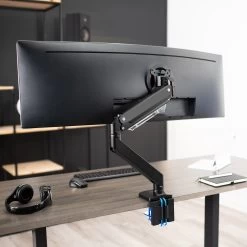 Elevate your ultrawide monitor to an ergonomic height and adjust the viewing angle with just the touch of a hand. Featuring high-quality aluminum construction, flexible joints, smooth height adjustment, a sturdy desk clamp and grommet mount, integrated cable management, and more, this stand is ready to transform your workspace.