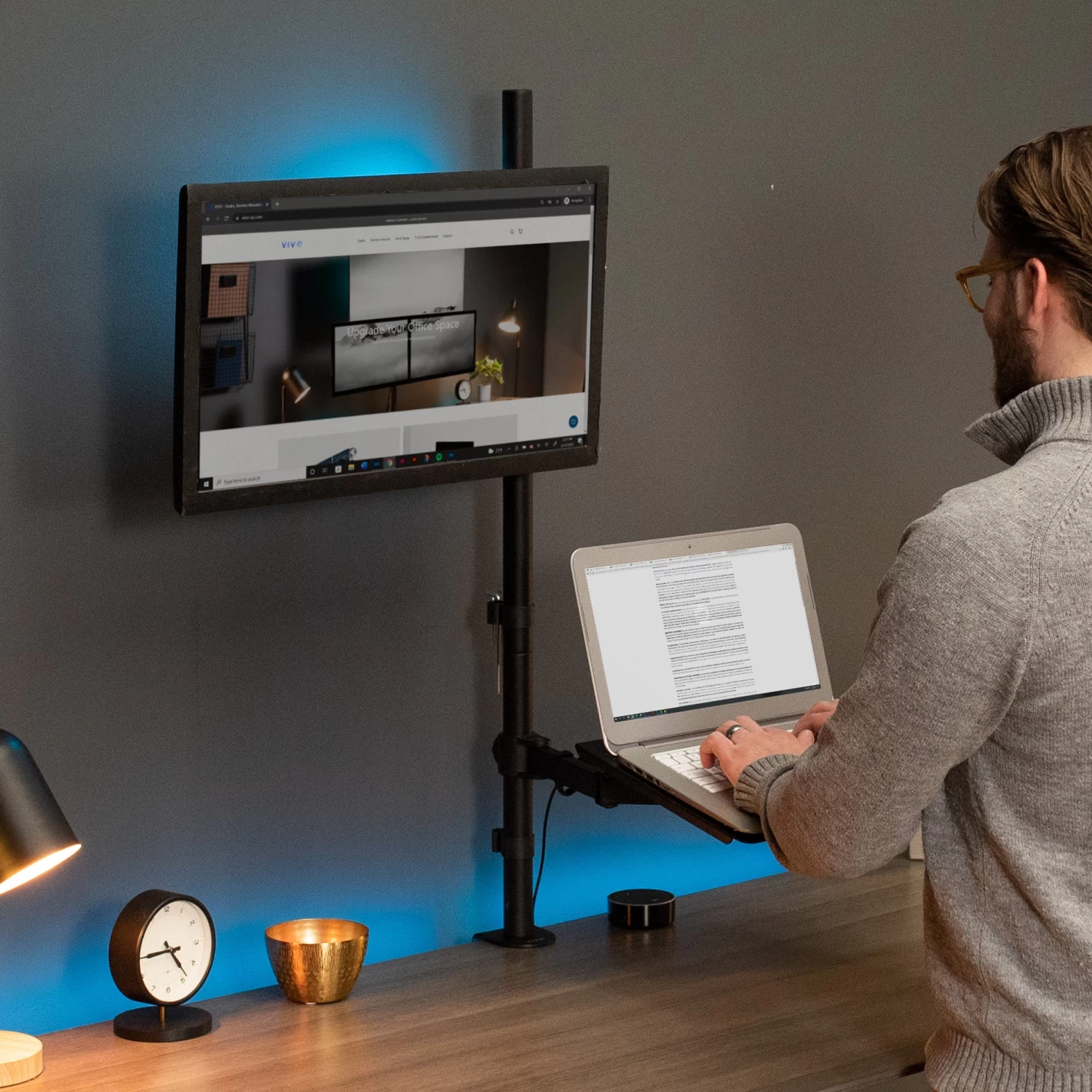 Mount your laptop and monitor on the same stand with our Single Monitor and Laptop Extra Tall Desk Mount.