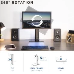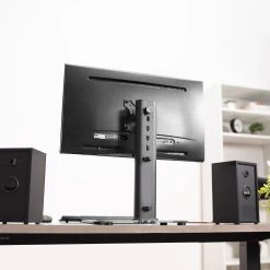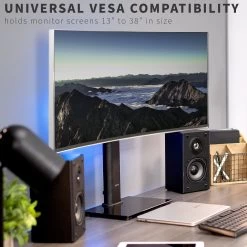 Constructed of high-grade steel, this stand was built to resist scratches and support a 13” to 38” ultrawide monitor or TV screen weighing up to 17.6 pounds. The stand’s sleek, black appearance blends well with virtually any environment, and cable management is provided to keep cords clean and organized.