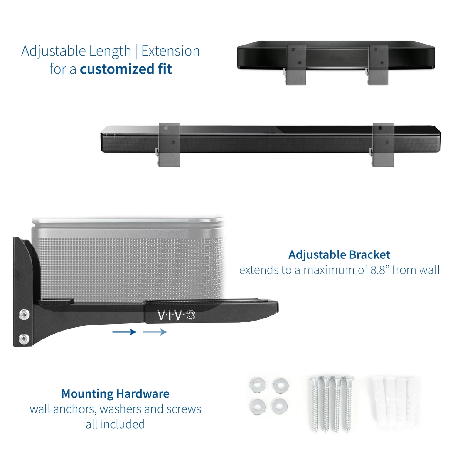 Find just the right mounting solution for your speaker with our Universal Soundbar Speaker Wall Mount.