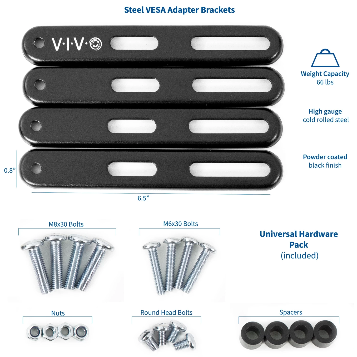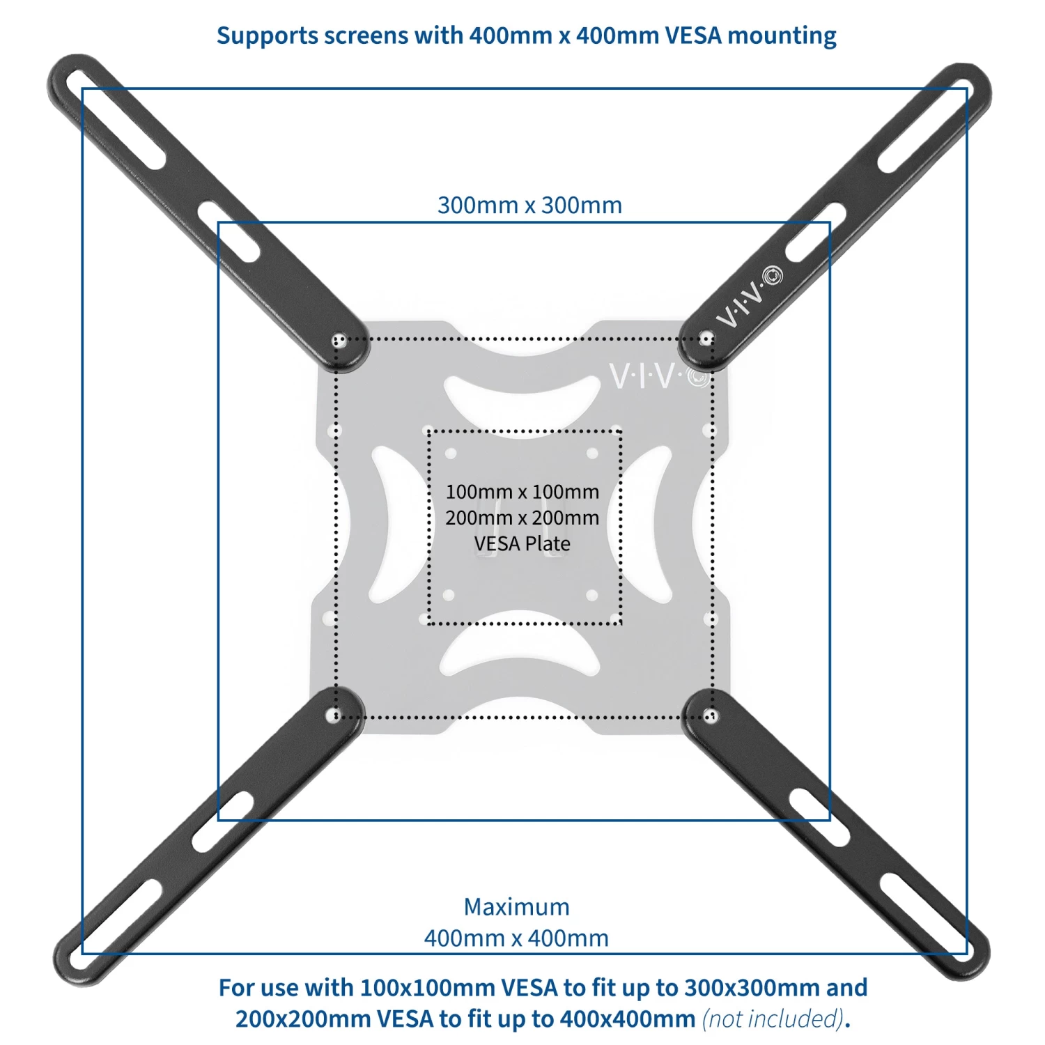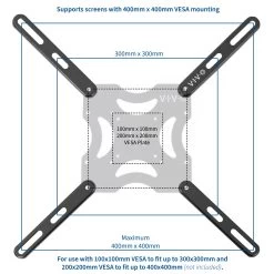 If you have a TV with 300x300mm or 400x400mm mounting holes and can’t find a VESA compatible mount, we have a solution! With this adapter, 100x100mm VESA mounts can now fit hole patterns up to 300x300mm, and a 200x200mm VESA mount can now fit screens with hole patterns up to 400x400mm.